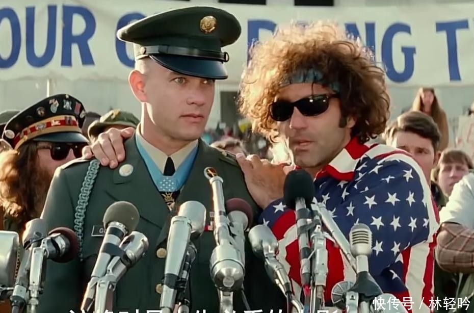 在华盛顿的反战集会上,当人群高呼口号、情绪激昂之时,阿甘被推上讲台。